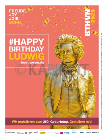 beethoven.de Herausgeber: Beethoven Jubiläums GmbH, Layout: Jutta Benze/Bundesstadt Bonn, Foto Giacomo Zucca/Bundesstadt Bonn, Motiv „UNSER LUDWIG“ aus der Kunstinstallation „Ode an die Freude“ von Ottmar Hörl 2019