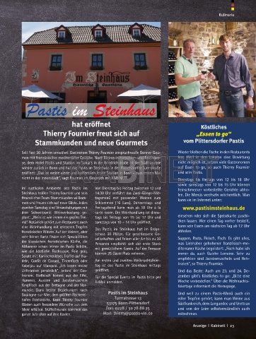 Steinhaus heißen Thierry Fournier und sein 14.30 Uhr verführt das Zwei-Gänge-Mit- len. Die Menüs wechseln wöchentlich. Man