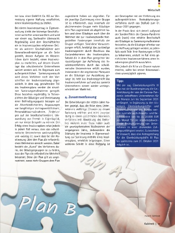 stimmung über den Plan die erforderli- venzplans, erheblich beigetragen. Einen bis spätestens zum 31. Oktober 2021