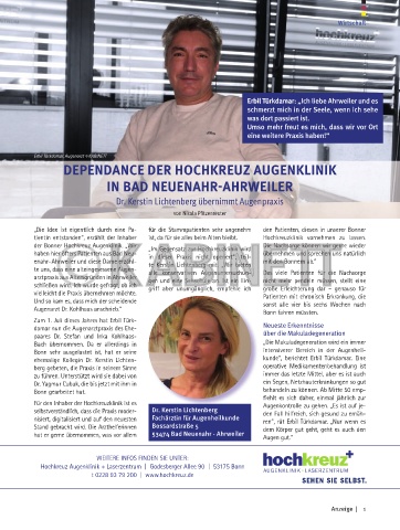 der Bonner Hochkreuz Augenklinik. „Wir „Im Gegensatz zur Hochkreuzklinik wird Die Nachsorge können wir gerne wieder